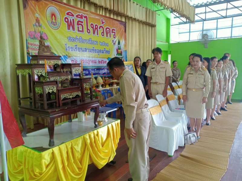 โรงเรียนสามชัยอุดมวิทย์ จัดทำพิธีไหว้ครู ประจำปีการศึกษา2563